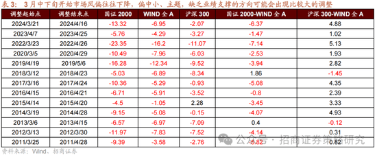 3月中旬发布1-2月经济数据,市场起头对全年经济有了新的预期,若是经济数据不及预期,会使得对一季度上市公司财报预期下修,进而提前进入年报和一季报的业绩披露期买卖。年报和一季报的业绩披露期买卖是指投资者起头对上市公司业绩进行客不雅评估,对于前期涨幅较大,可是缺乏业绩支持的标的进去处盈。同时选择业绩可能会超预期或者业绩稳健的板块进行设置装备摆设。此时,风险偏好往往下降,偏中小、从题,缺乏业绩支持的标的目的可能会呈现比力大的调整,从积年这个买卖调整幅度来看,国证2000指数调整幅度从5~20%不等。正在风险偏好下降的下,沪深300也难以独善其身,但调整幅度相对较小。